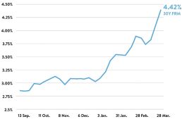 Below is a chart of US home loan rates since August, which shows that mortgage rates have risen sharply, from 2.8% eight months ago to 4.4% currently. In contrast, home loan rates in Australia have declined over the same period; a trend that we feel will must reverse. As we have discussed in earlier commentaries, rising interest rates will place pressure on valuations of assets that have been pushed up to levels that are high by historical standards. This effect will not be uniform and we feel there will be great benefit in holding assets that are not valued at extreme levels.
