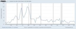 Energy prices rose sharply over the year: oil was up 48% and recently gas and coal prices have increased sharply particularly in European markets. Prices for agricultural products also increased significantly over the last twelve months with food products up 19% and non-food products up 27% (as measured by the Economist indices).