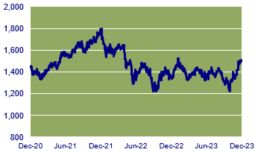 In the United States, the Federal Reserve has indicated that it thinks rates have peaked. At its last meeting of the year, the FOMC held the Federal Funds target unchanged at a range of 5.25-5.5%.